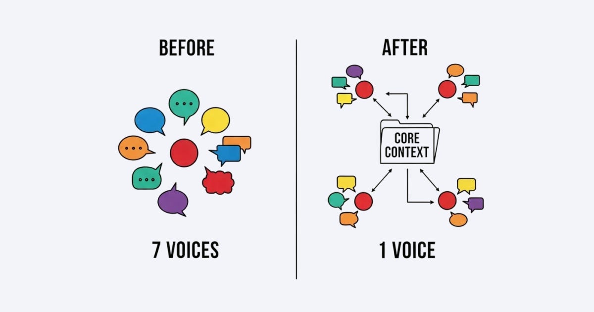 7 voices. Zero cohesion. That was my AI team.